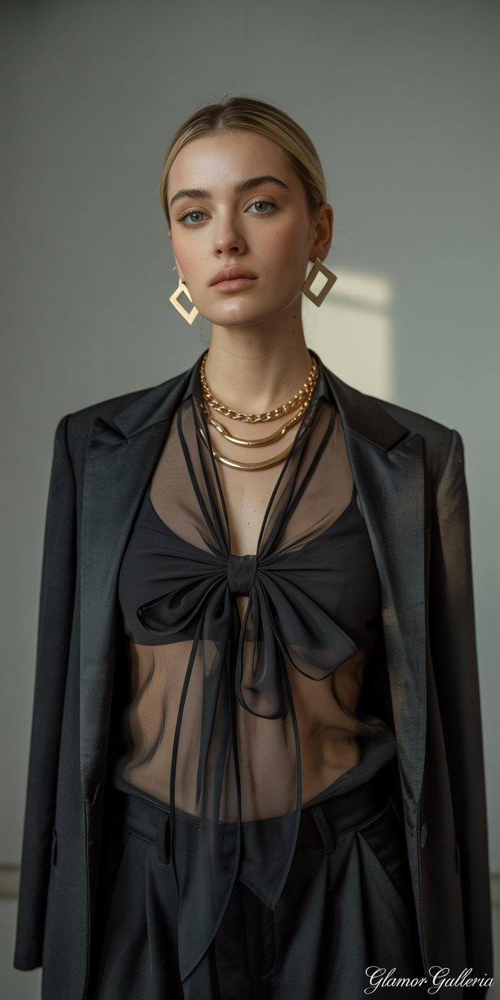 4. Statement Accessories: Pussy-Bow Blouses & Bold Jewelry