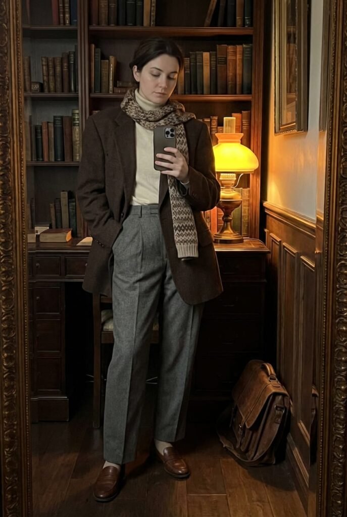 Structured oversized blazer in rich brown or charcoal — the backbone of dark academia. Why it ranks: Layering is the heart of this aesthetic and this blazer works over everything.