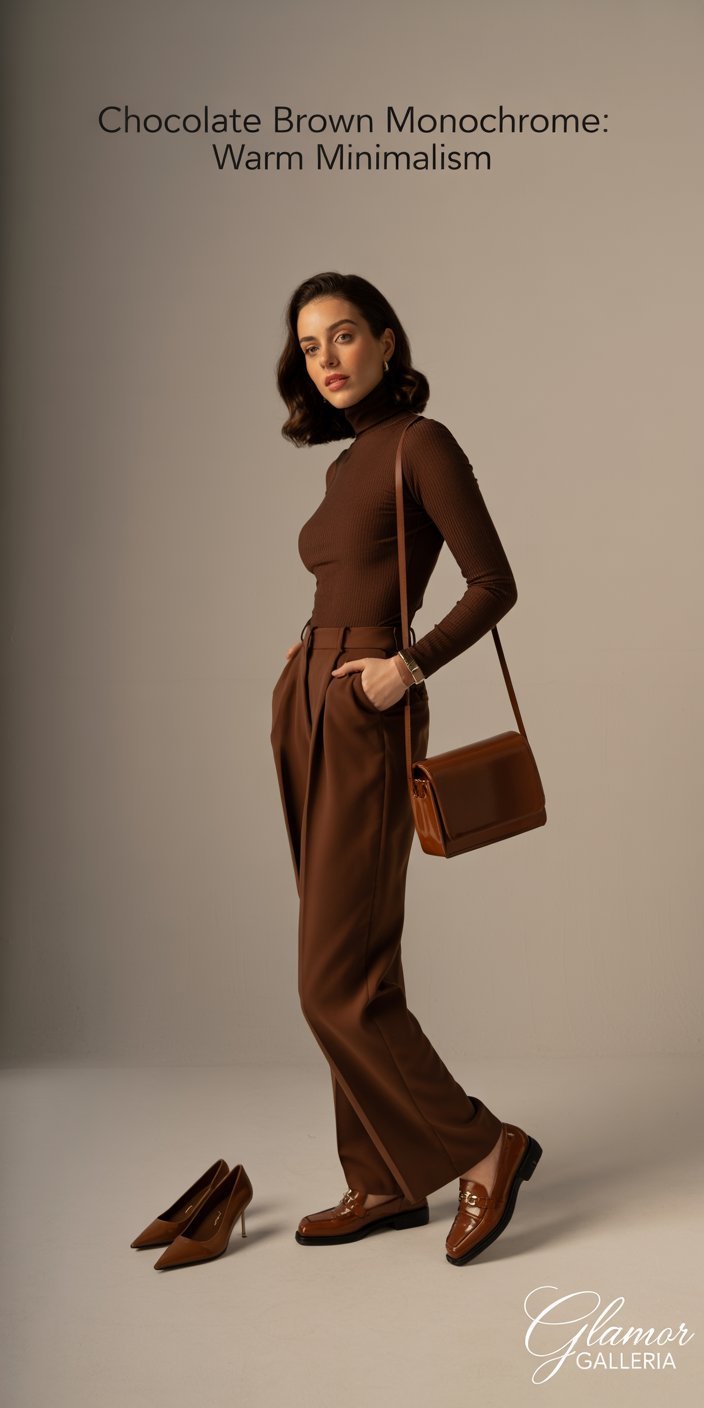 8. Chocolate Brown Monochrome Outfits: Warm Minimalism