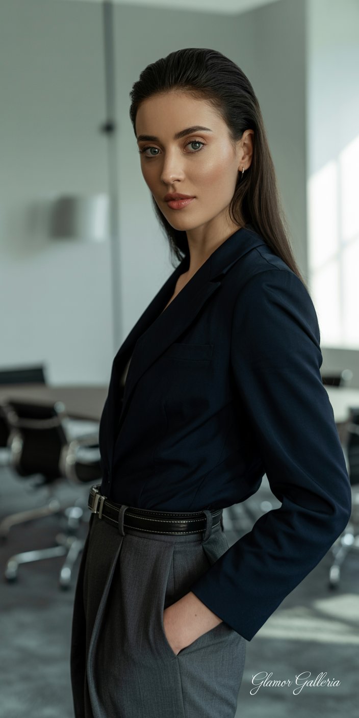 - Well-Fitted Trousers: Straight-leg or slim cuts in charcoal or black anchor both flats and pumps.