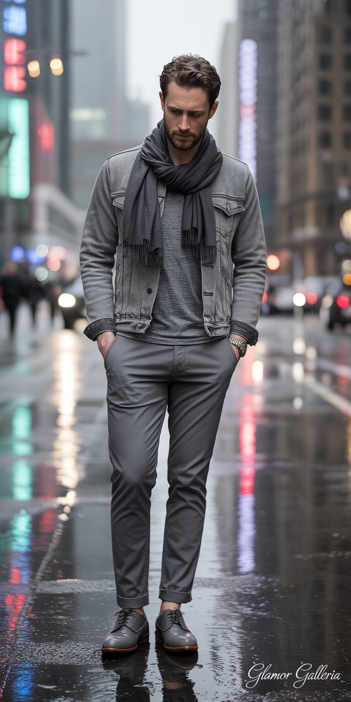 - Play with Texture: Wool, denim, leather, knits, and technical fabrics each reflect light differently.