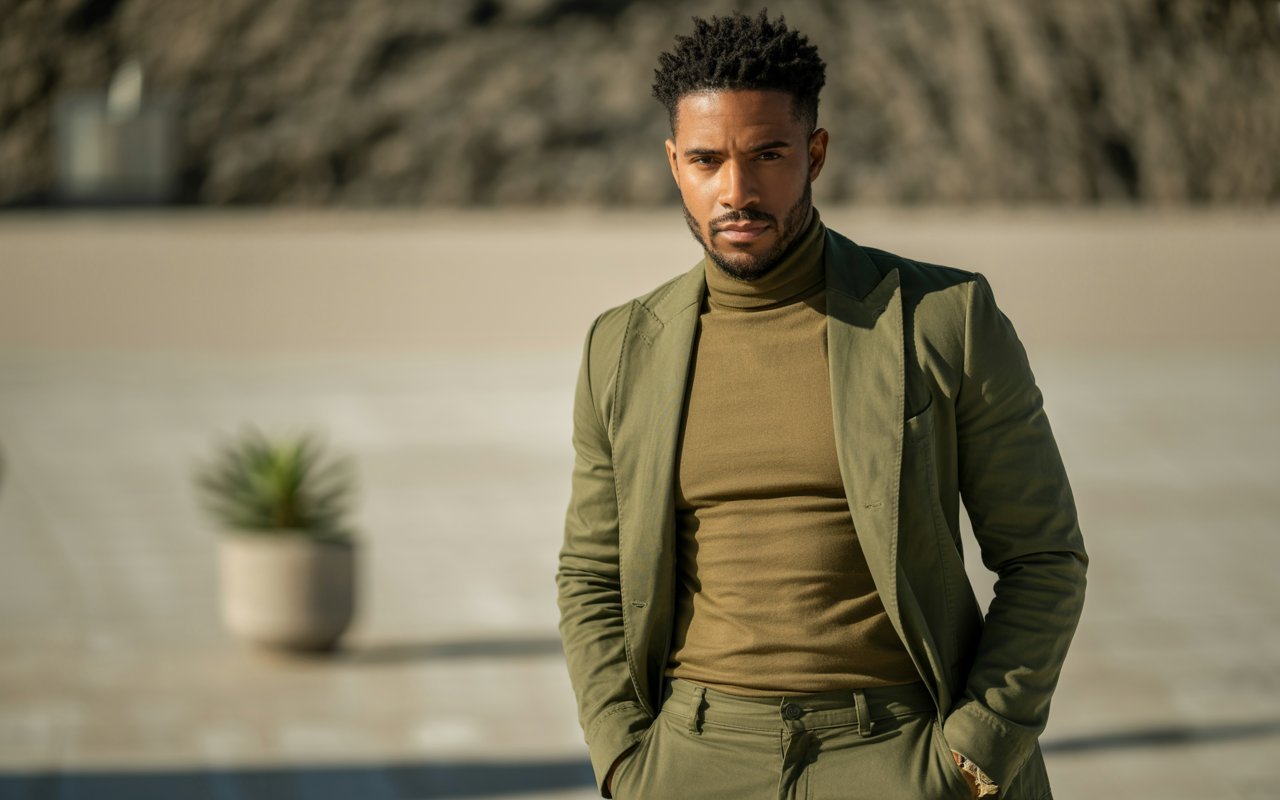 5. Olive Green Monochrome: Earthy Sophistication