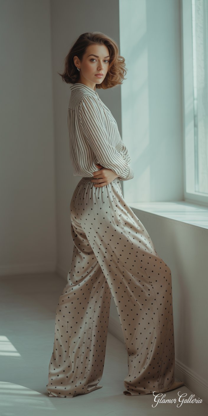 Start with stripes and polka dots. Both patterns use simple geometry, and when paired in contrasting scales (wide stripes + tiny dots), they create a balanced look without feeling adventurous right off the bat.