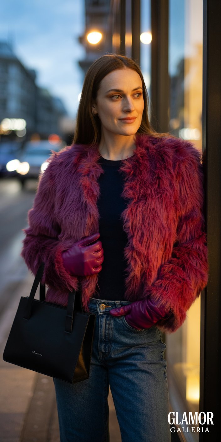 - Tactile Luxury: Faux fur in bold shades feels as sumptuous as it looks.