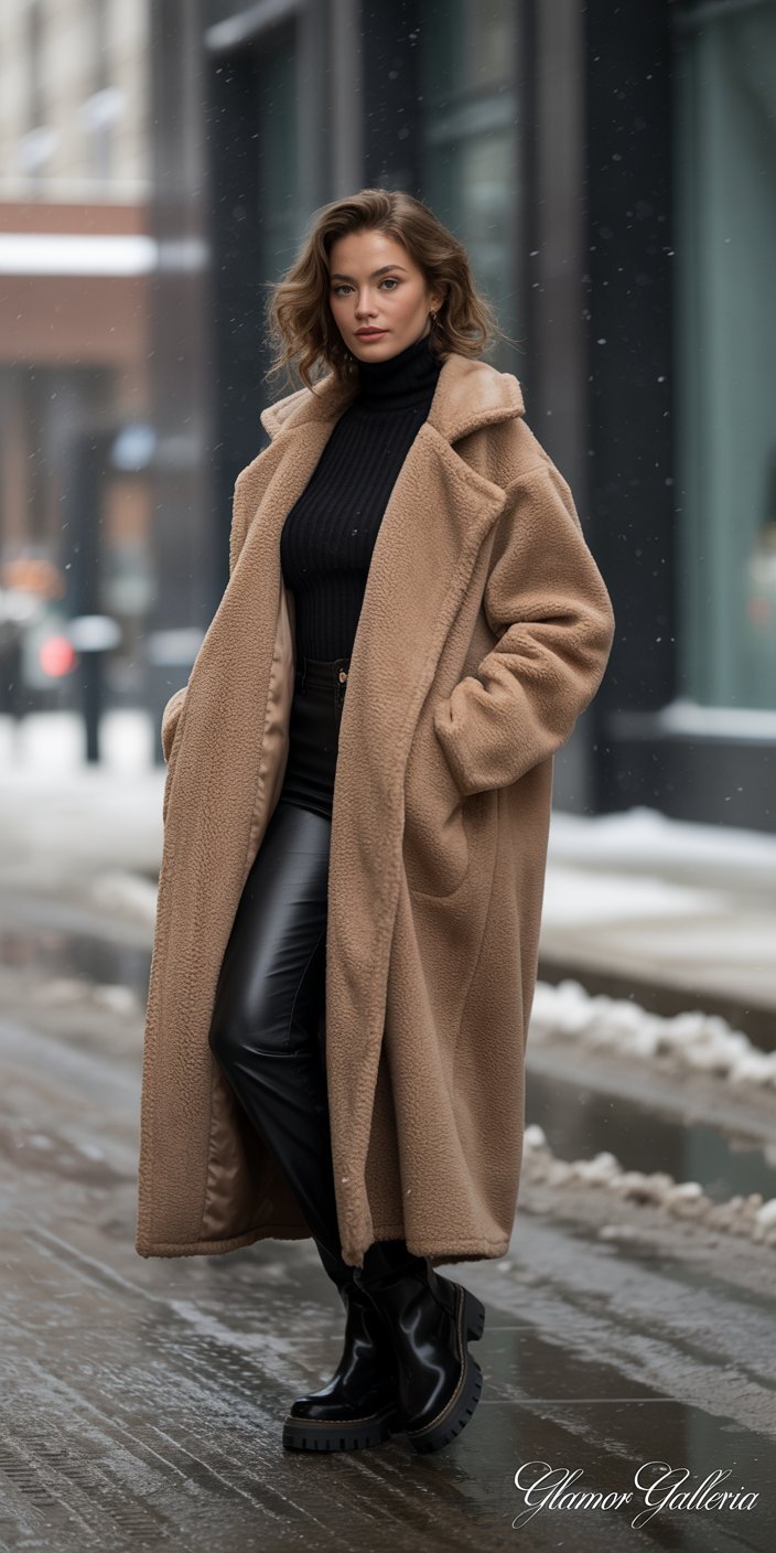 - Monochrome Underneath: Let the camel or ivory teddy shine by keeping your base layer neutral.