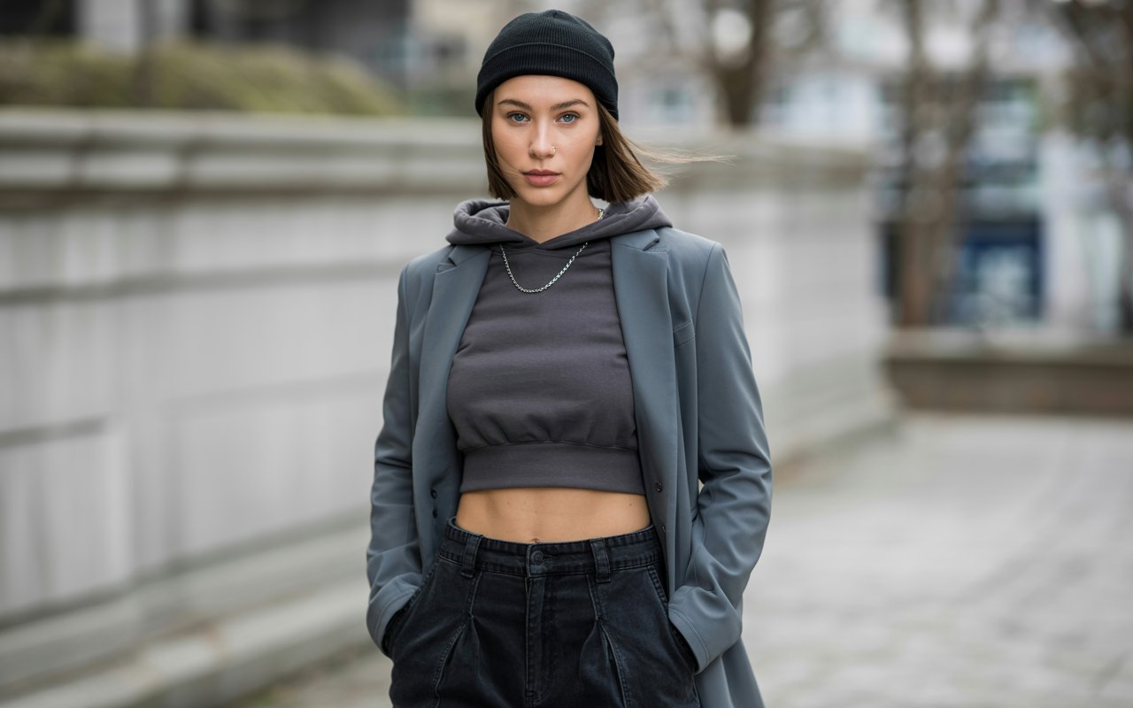 - Dial proportions up—baggy + cropped or oversized + fitted.