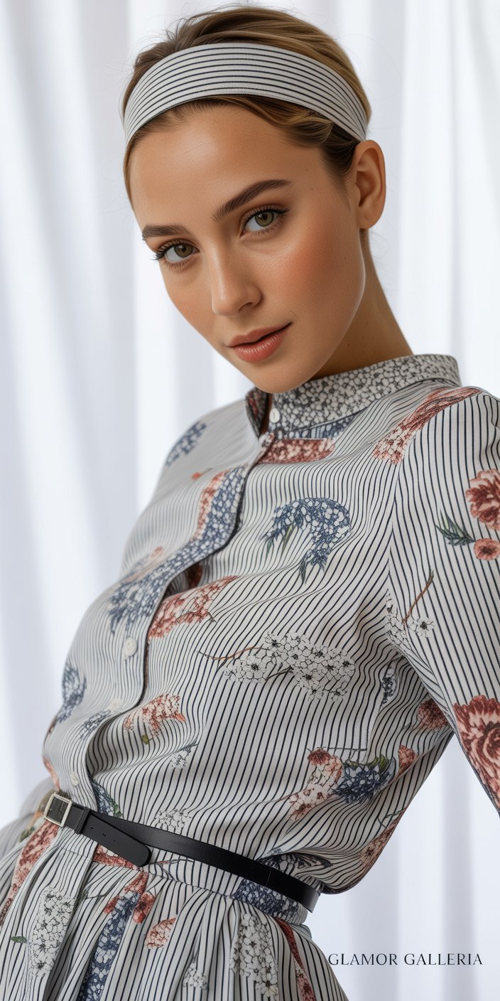 Echo the stripe or floral motif subtly in your accessories: a striped headband or floral-print shoes can reinforce your mixed-print ensemble. This repetition reinforces your intention and makes the overall outfit feel thoughtfully curated.