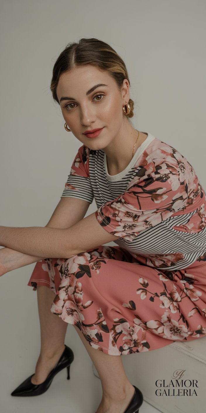 Combine fabrics of similar texture to keep the focus on pattern rather than material contrast. Silky florals pair best with smooth cotton or jersey stripes. Mixing heavyweight tweed stripes with sheer chiffon florals can feel disjointed; match “smooth with smooth” for a cohesive feel.