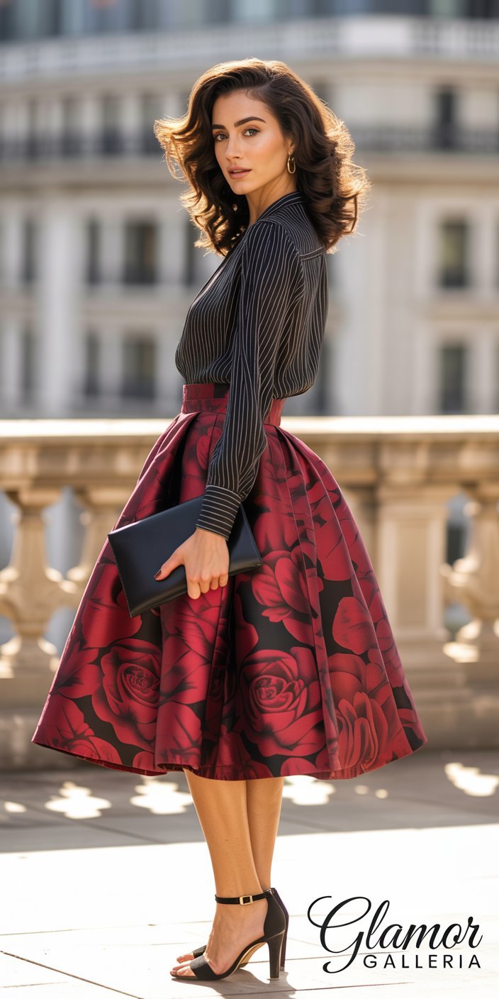 Mixing a large-scale floral with narrow stripes (or vice versa) prevents patterns from competing for attention. A skirt with oversized roses balances perfectly with a fine-pinstriped blouse, letting each print shine in its own right. Remember: one bold print, one supporting print—that’s the essence of how to mix prints successfully .