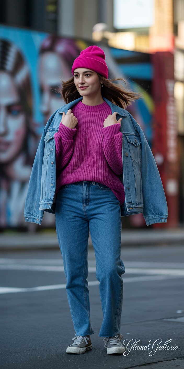 - Vibrant Top: A chunky Pantone sweater or graphic tee brings instant energy.
