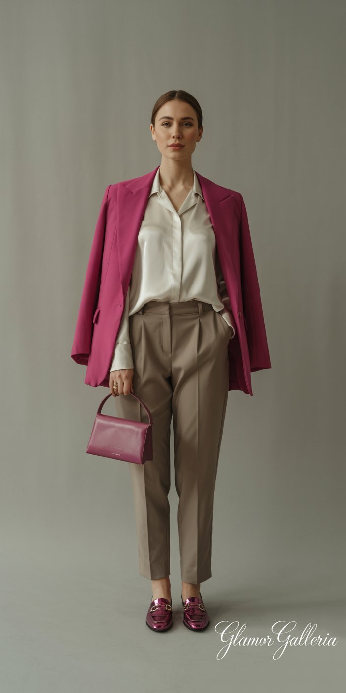 - Accent Piece: Introduce the Color of the Year (for example, Viva Magenta) via a structured blazer or sleek handbag.