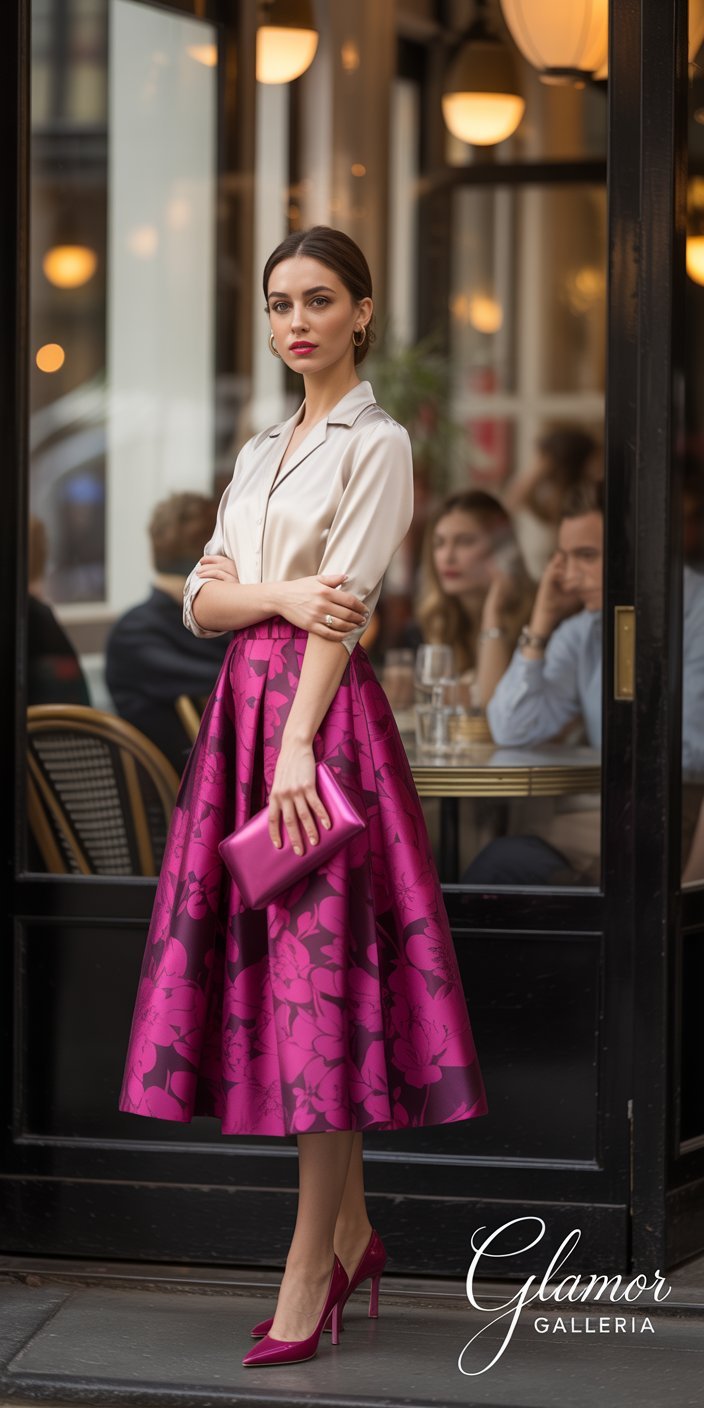 - Accessory Alignment: Match a printed bag or shoes to tie both tones together.