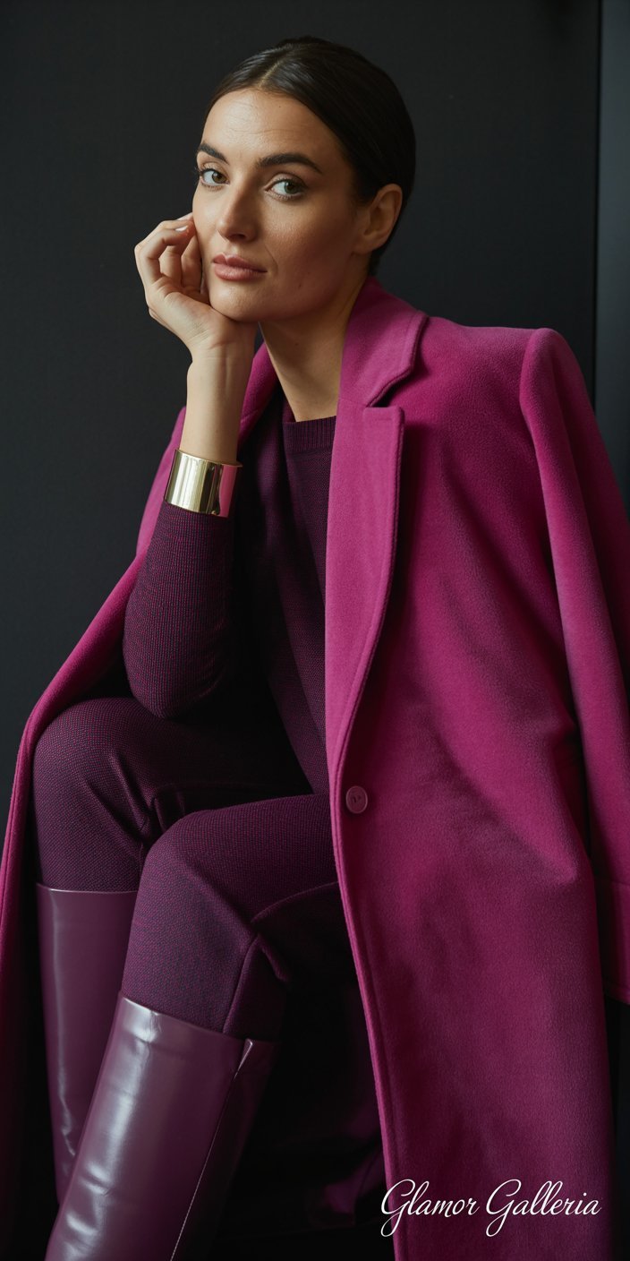 Tip: A tonal trench in deep berry under a caped coat in Viva Magenta feels luxurious and intentional.