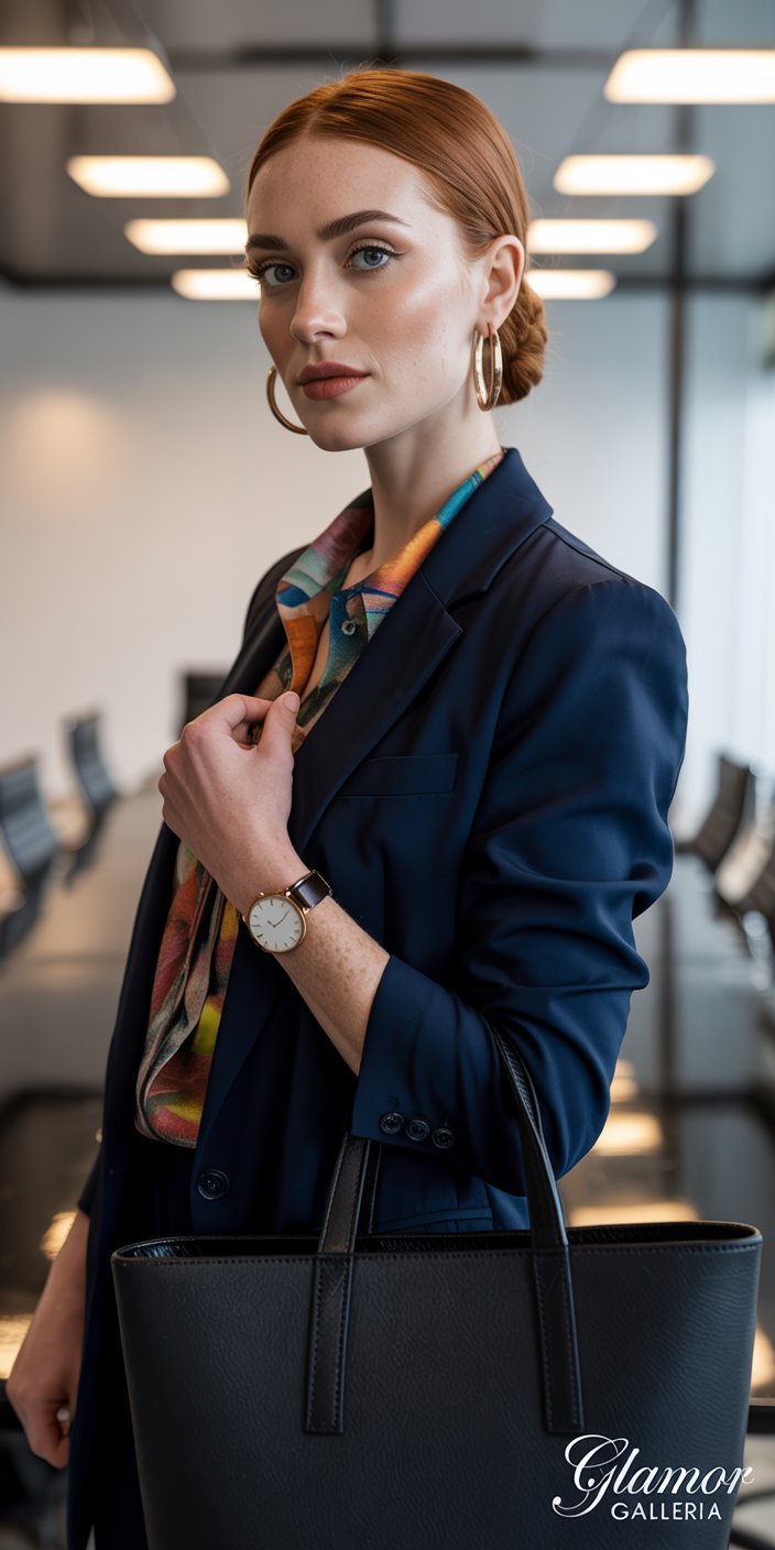 Structured pieces anchor vibrant prints, preventing them from appearing too casual or bohemian. The result: a balanced, assertive look that commands respect in any boardroom.