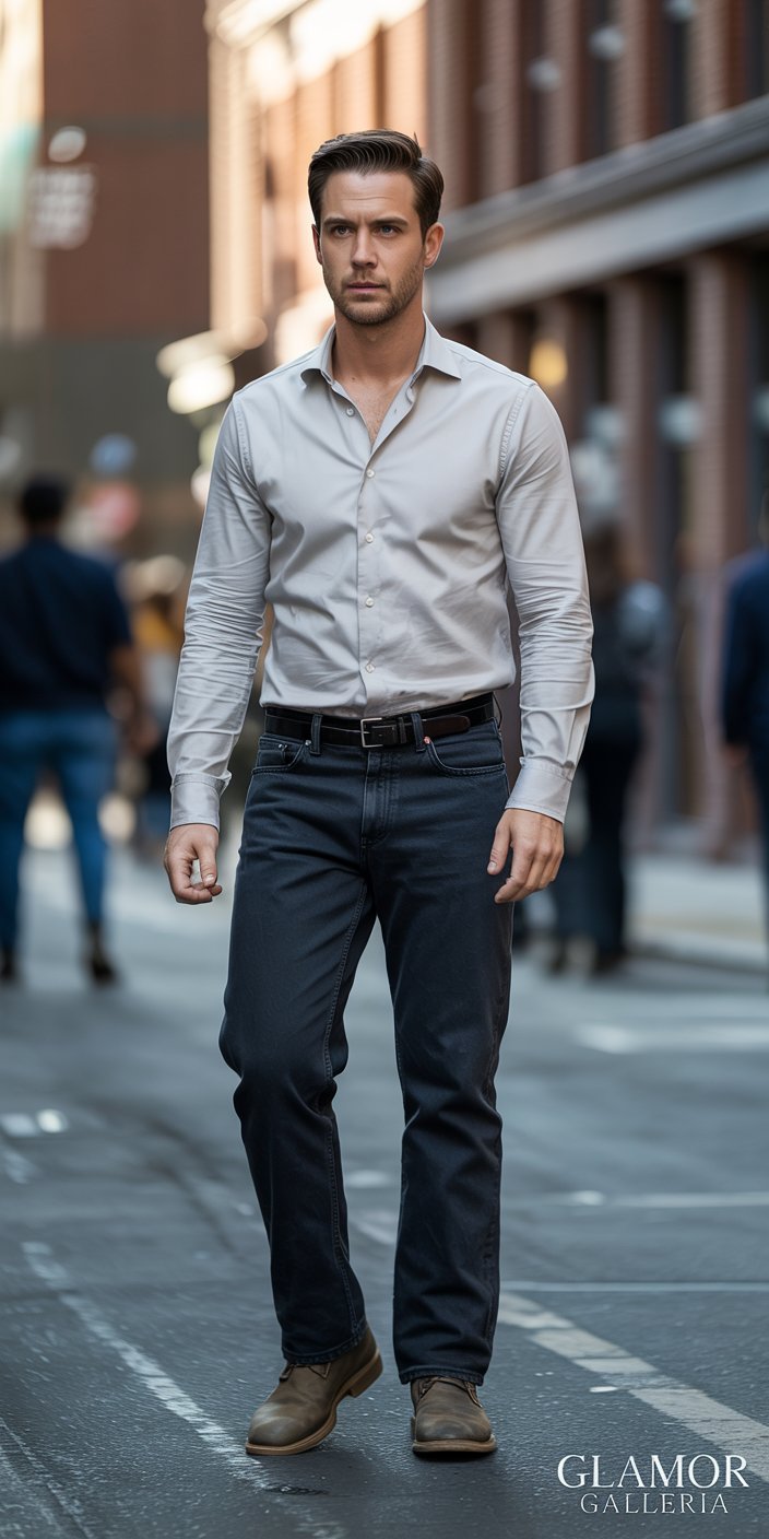 - Night: Tuck into dark jeans, add a leather belt, and finish with a sport coat.