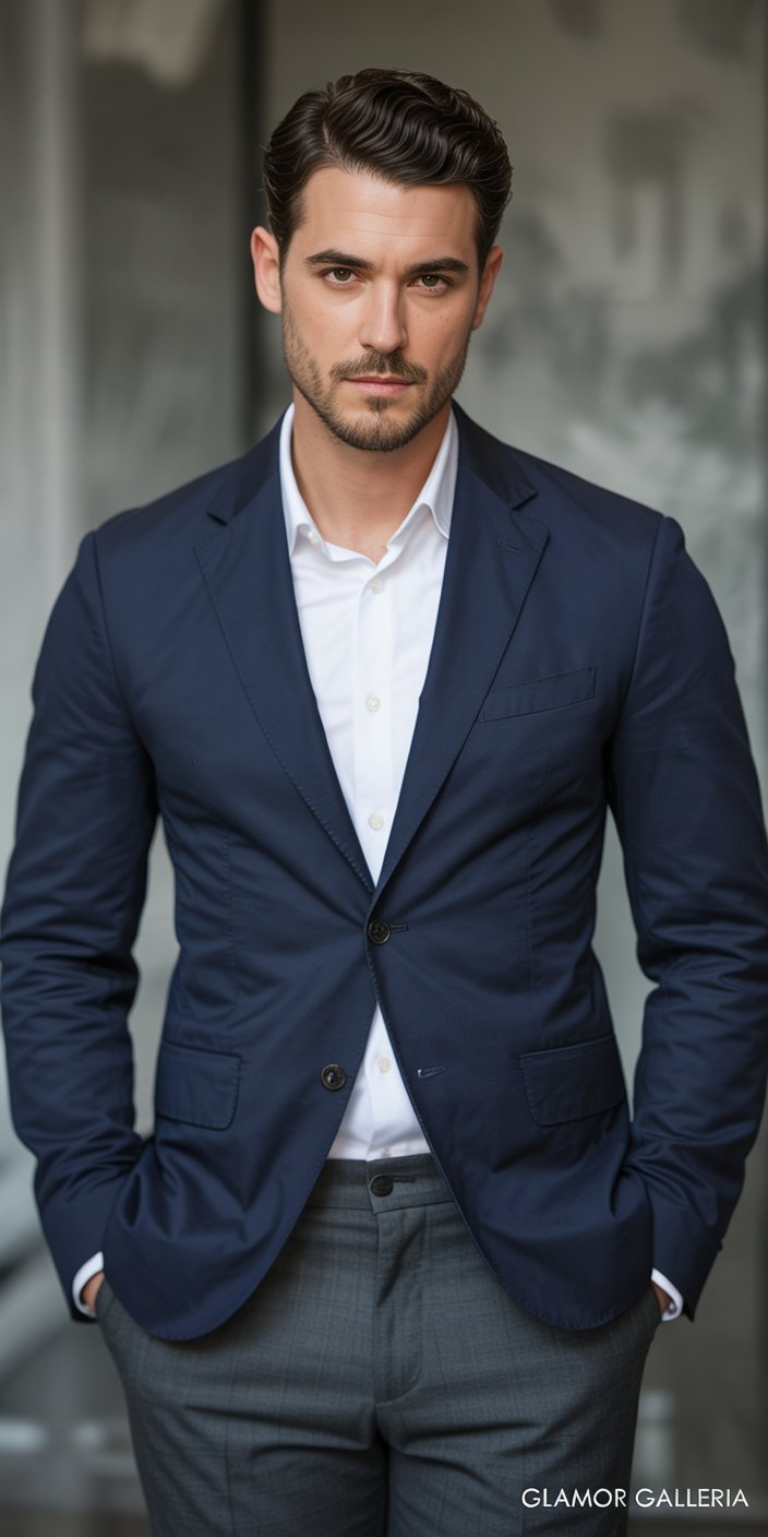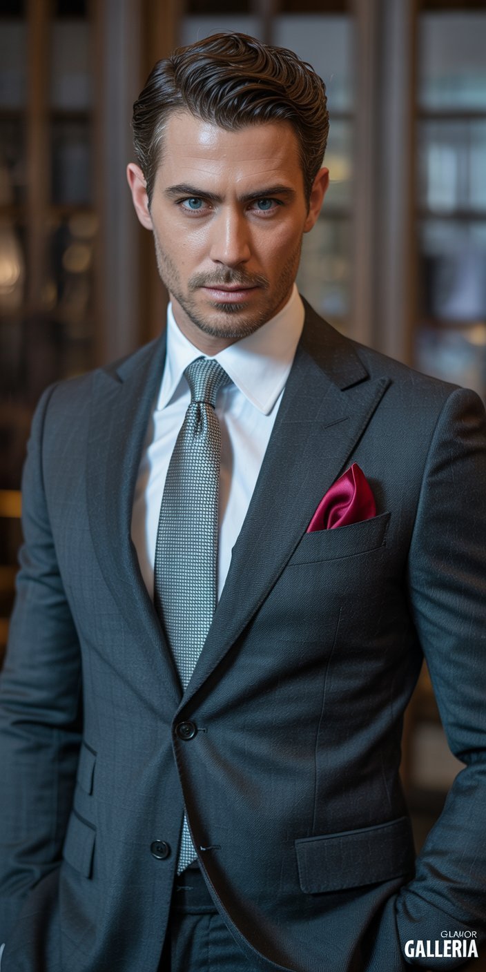 A well-tailored suit in grey or charcoal is the cornerstone of business and formal events. Look for a two-button jacket with flat-front trousers for a universally flattering silhouette.