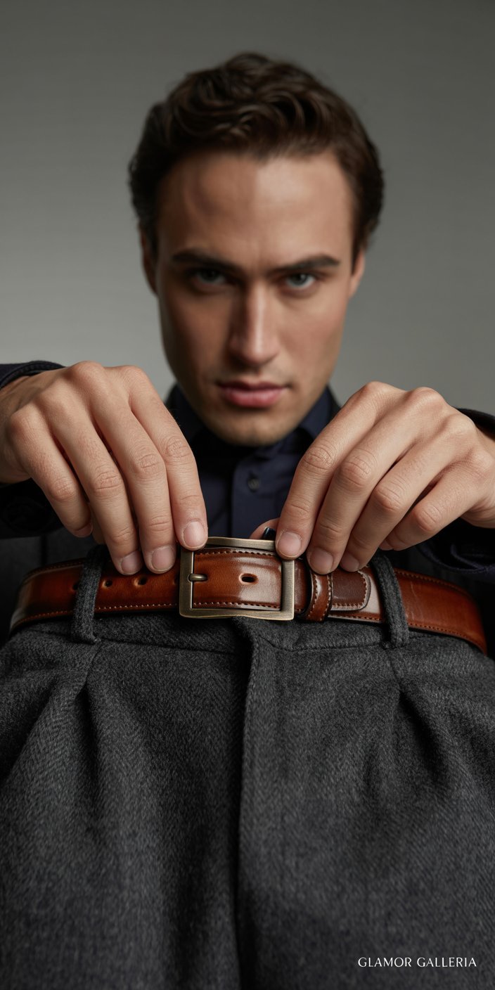 A reversible belt (black on one side, brown on the other) simplifies coordination. Match belt width to your pant loops—typically 1.25–1.5 inches for dressier styles.