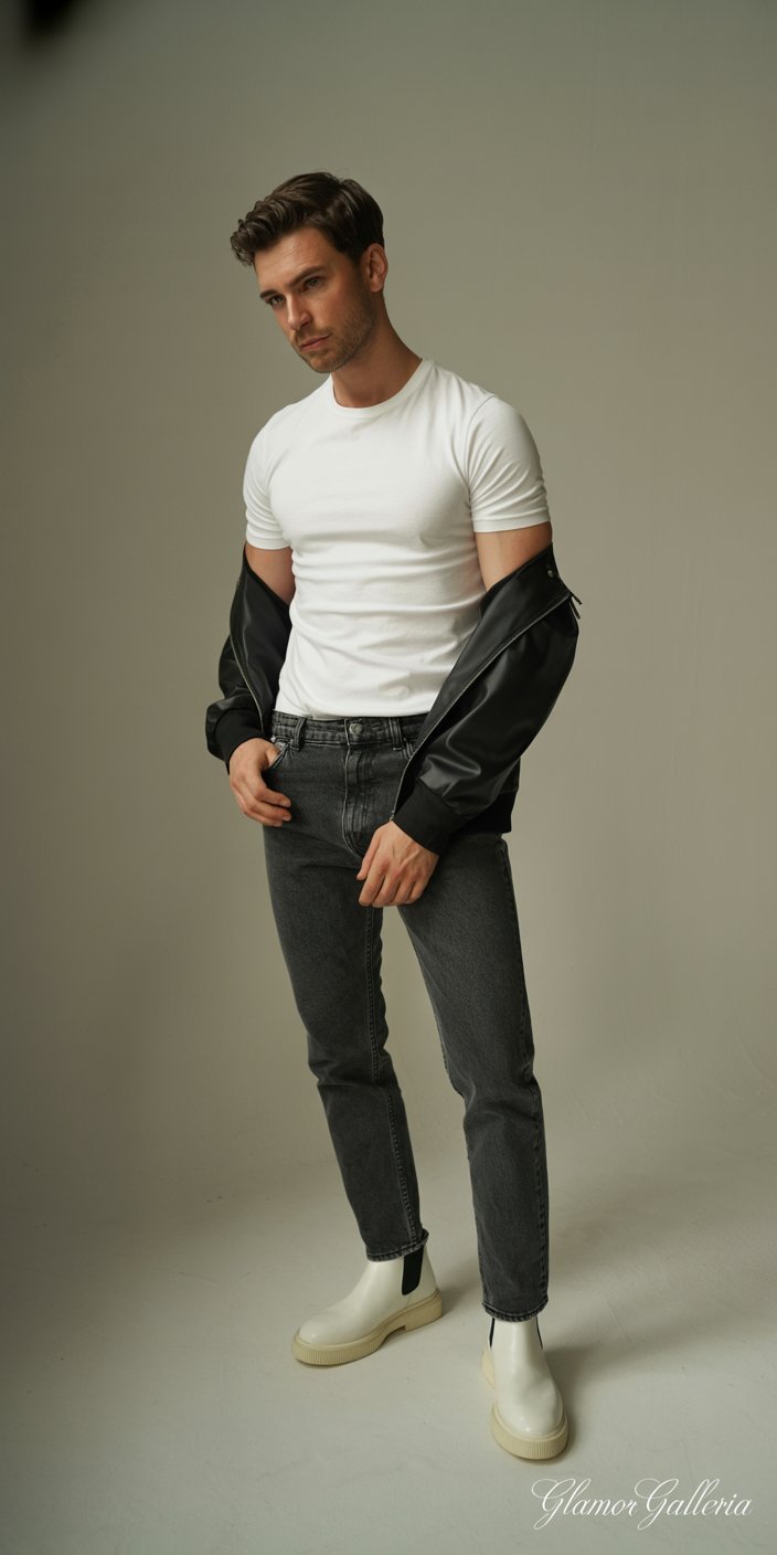 Nothing says effortless cool like a well-fitted leather jacket. A black or dark brown moto or bomber style adds edge to any outfit.