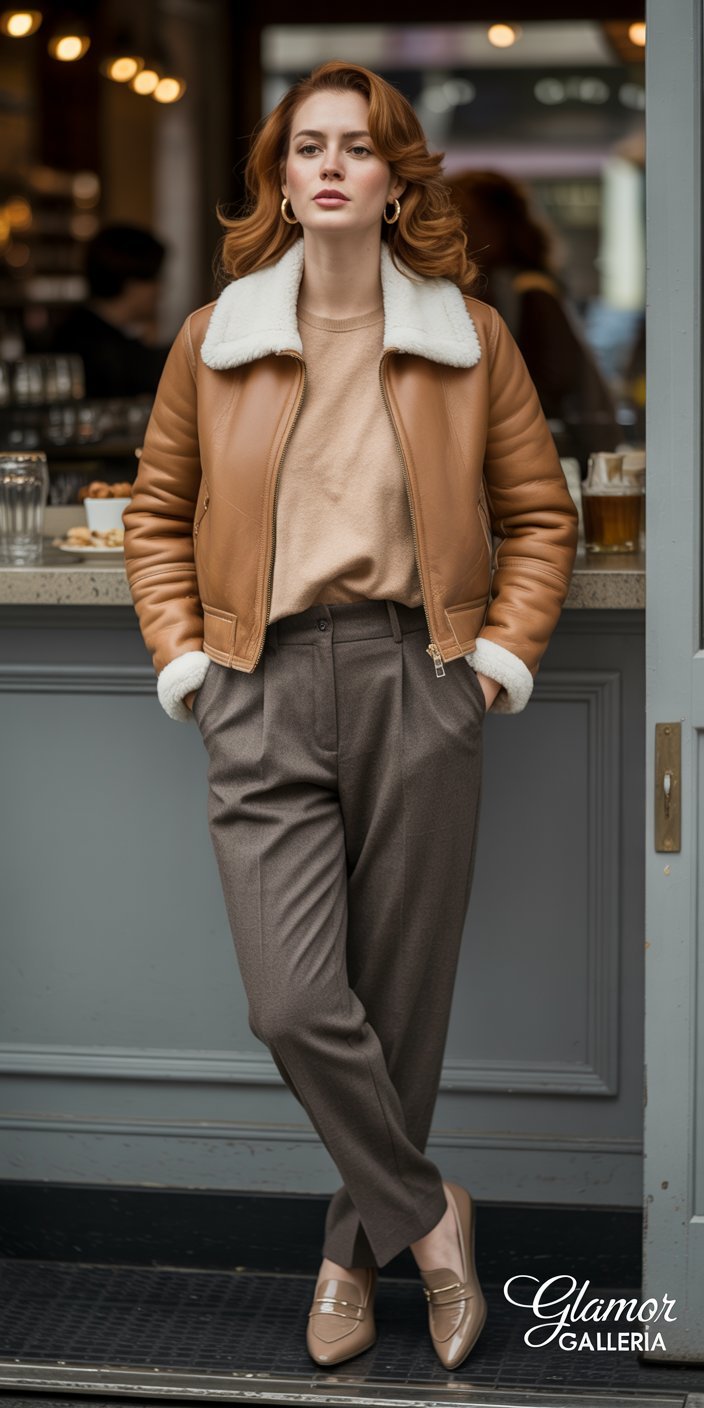 - Anchor: Tan or white shearling bomber.
