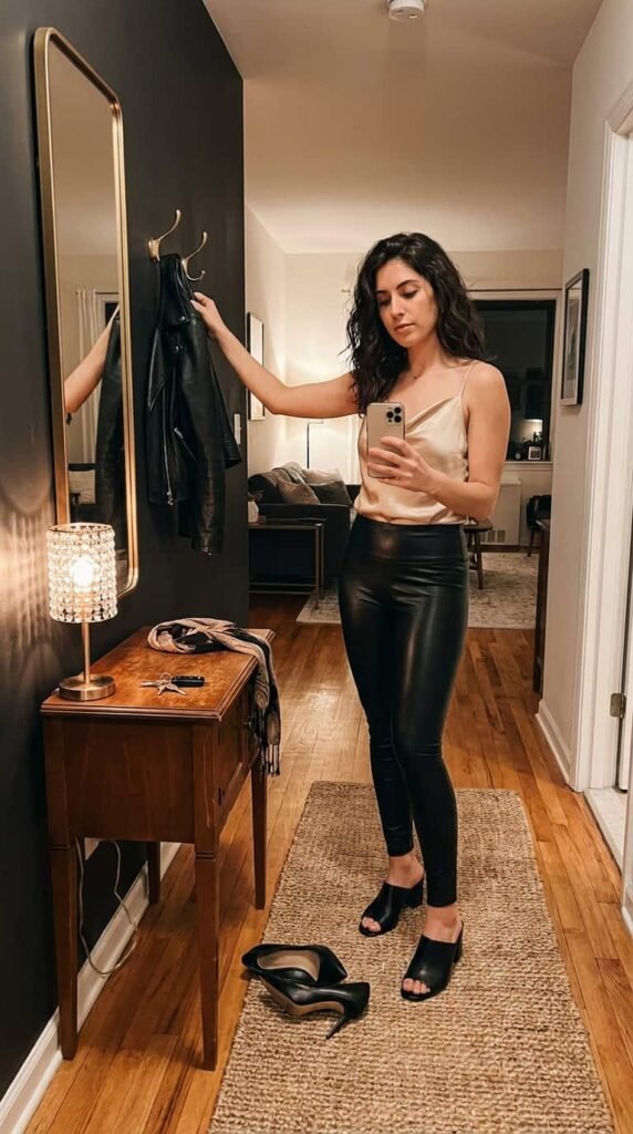 5. Leather Pants + Silk Camisole