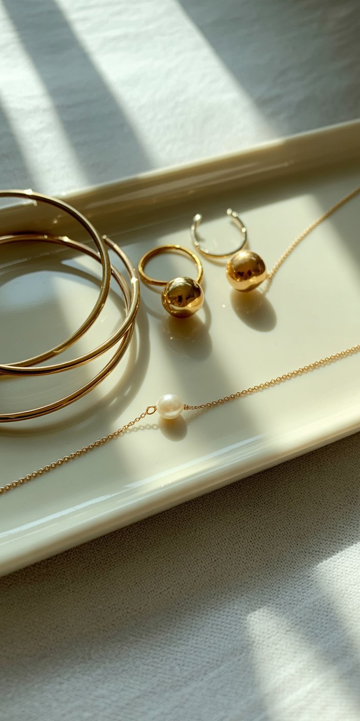 - Why: Delicate gold or silver pieces—studs, a dainty necklace, and thin bangles—add polish without overpowering.