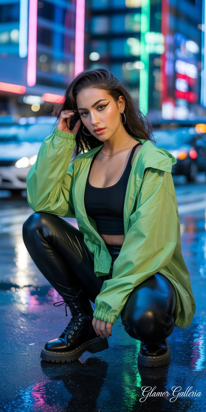 - Styling Tip: Neon green sports bra under a black mesh top, black leggings, and chunky sneakers for an athleisure edge.