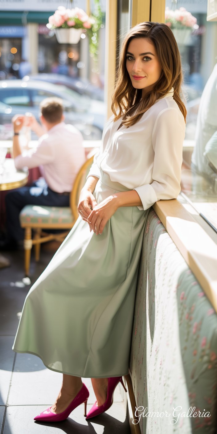 - Styling Tip: Pair a hot pink midi skirt with a kelly green blouse. Tone it down with nude sandals.