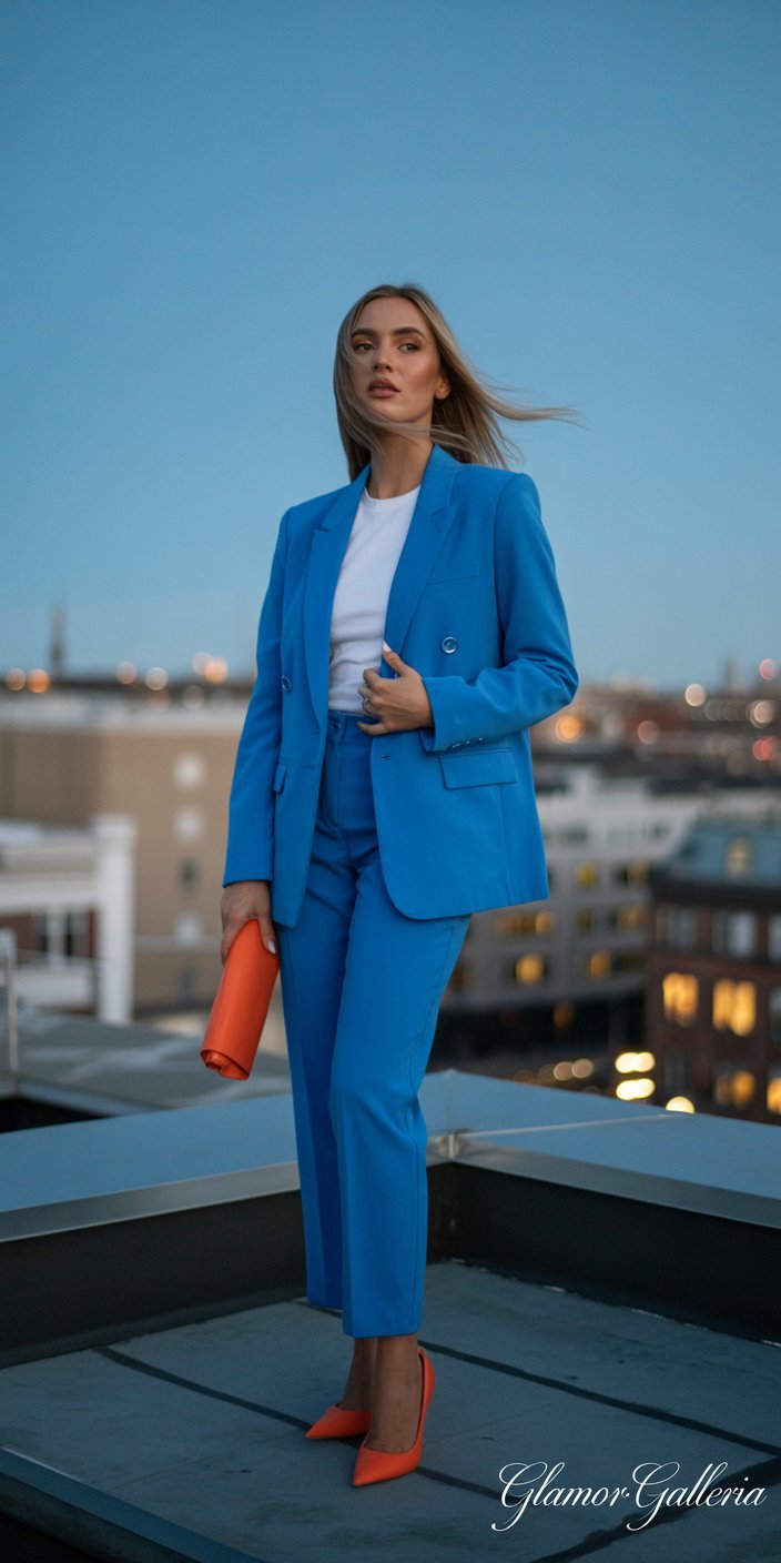 - Styling Tip: Wear an electric blue blazer over a simple white tee and add tangerine heels or a clutch for a striking evening look.