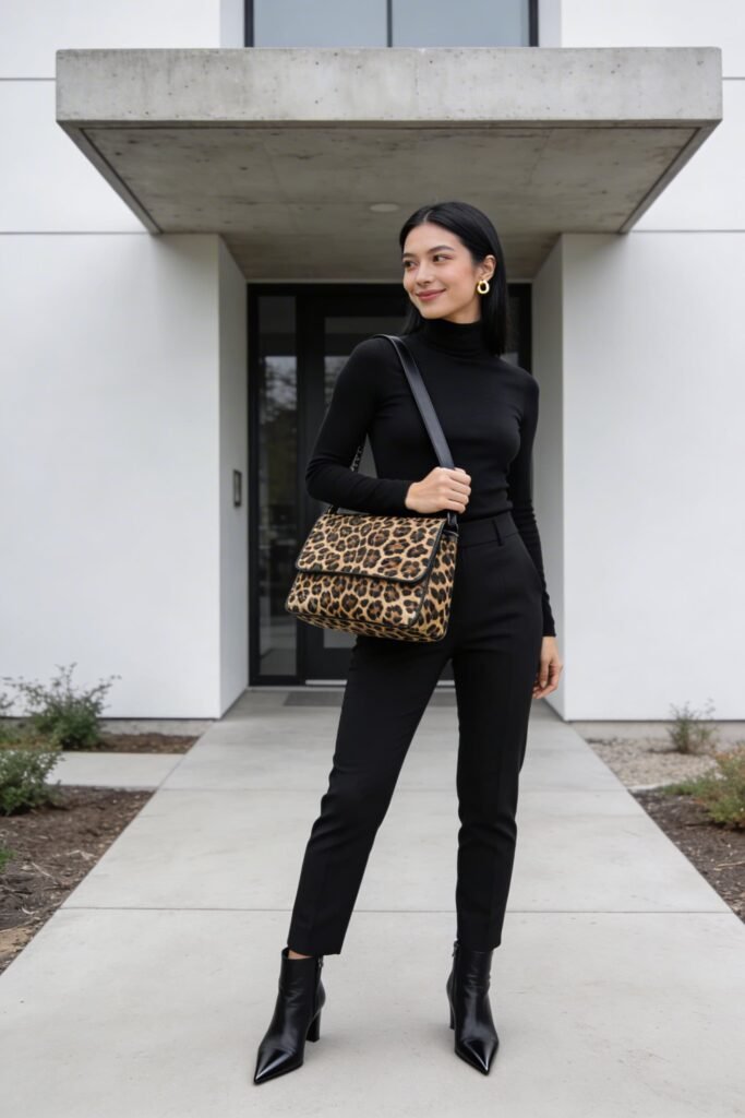 Shop it: Mango or Zara leopard bag ($30–$60) + your existing all-black outfit.