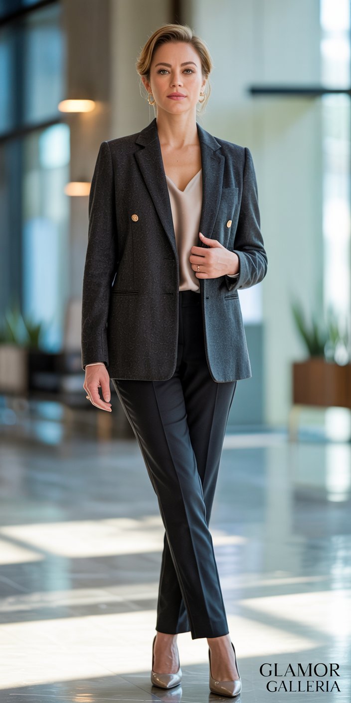 - Office Essential: Pair with matching trousers and pumps for a classic suit look.