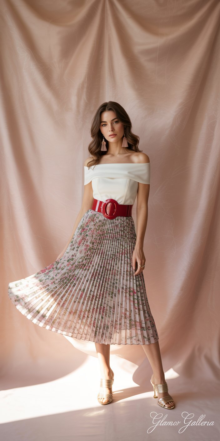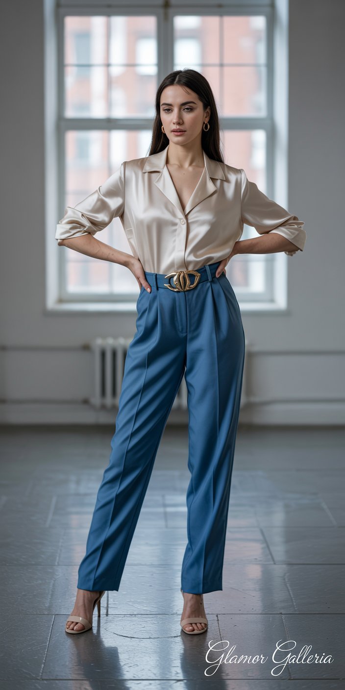 • Pro Tip: Metallic or patent-leather belts contrast beautifully against matte fabrics.