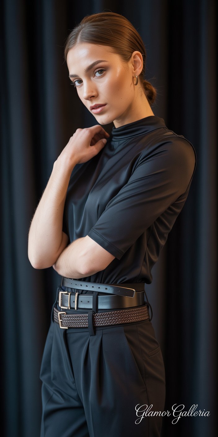• Why It Works: Layered belts create depth and highlight your waist as a focal point.