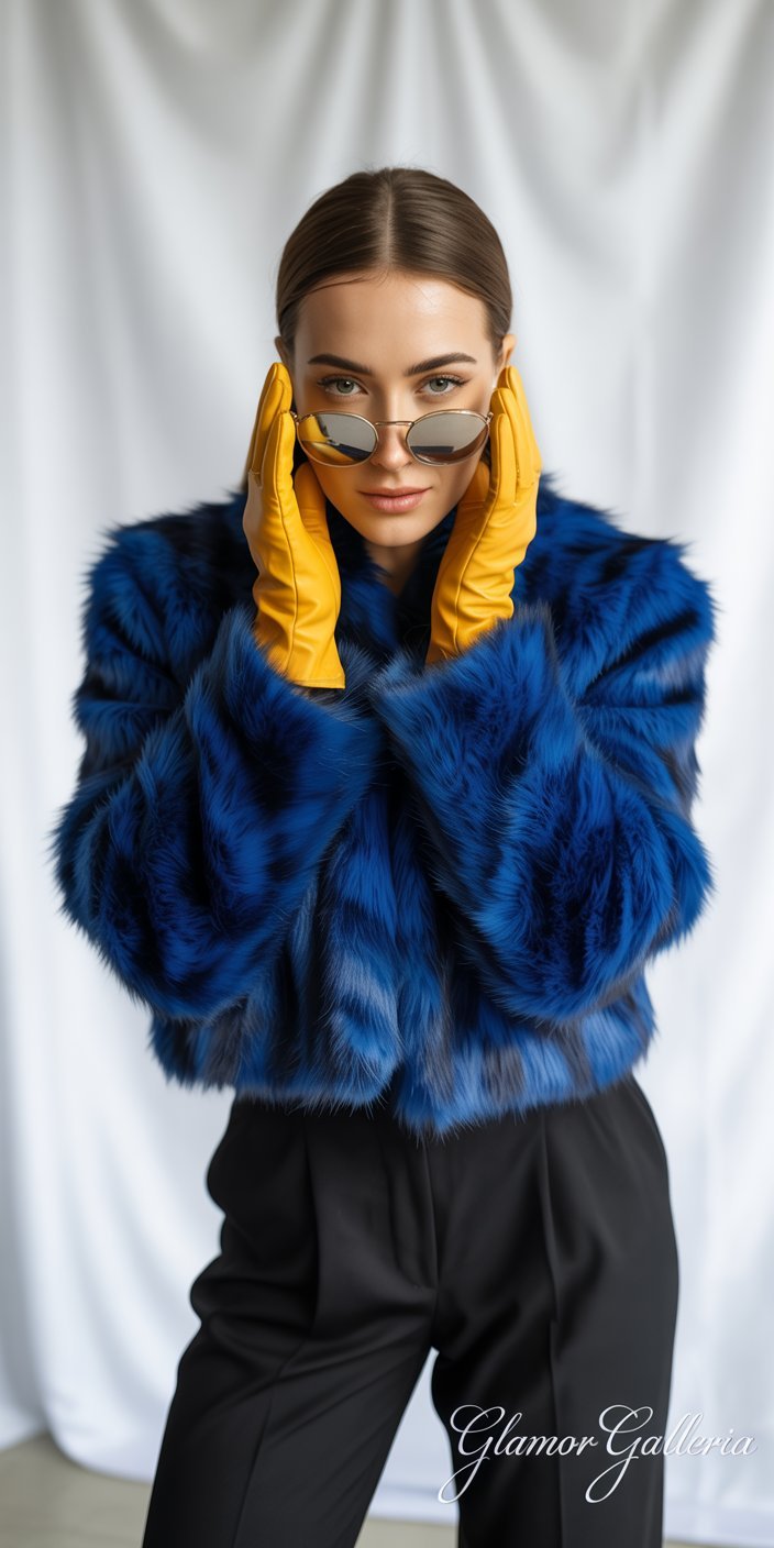 • Color-blocking fur coats can be paired with contrasting accessories for a runway-inspired look.