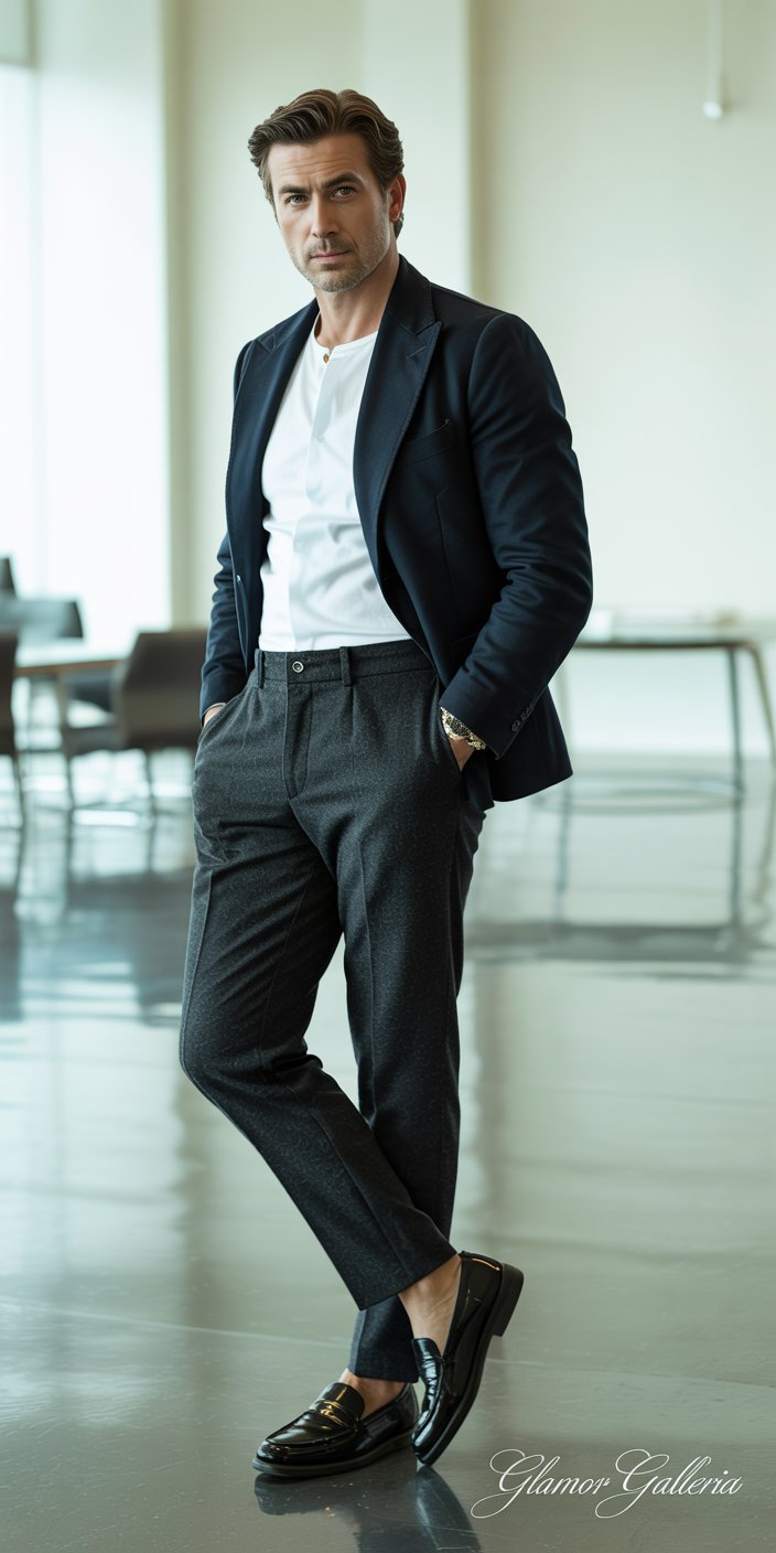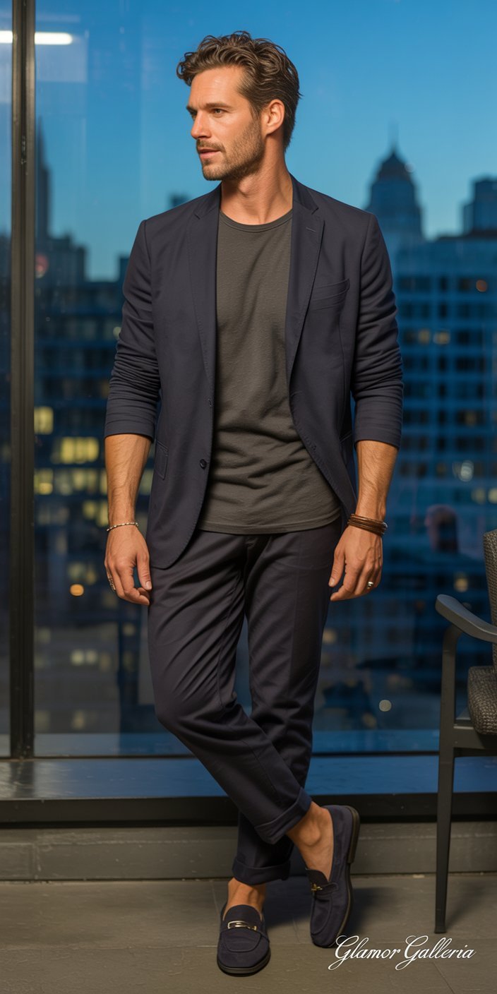 A well-fitted blazer instantly elevates any outfit. For office hours, pair a classic navy or charcoal blazer with tailored chinos and an Oxford shirt. After work, simply swap the shirt for a fitted crew-neck tee and roll up your sleeves for a relaxed, yet refined vibe.