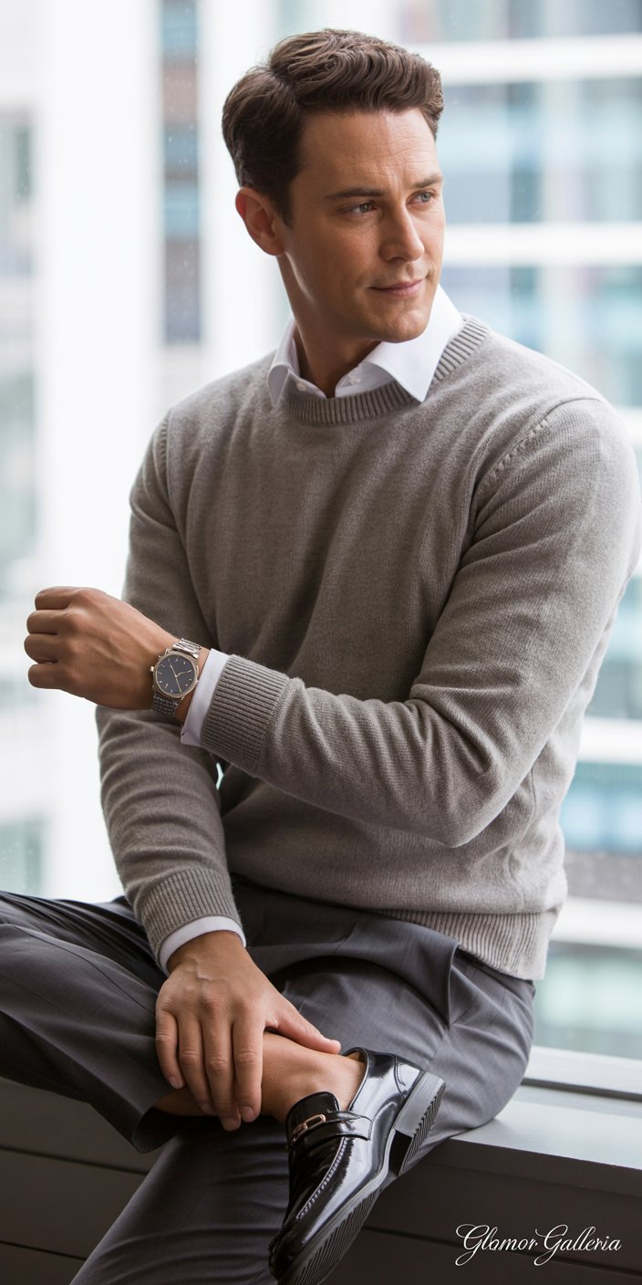 Knitwear layers add dimension, warmth, and a touch of luxury. A fine-gauge sweater over a collared shirt works all day and can be dressed up or down instantly.