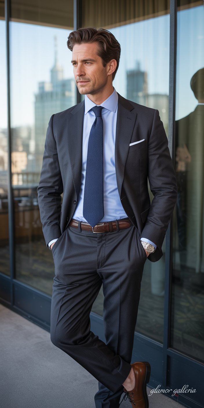 - Classic charcoal suit