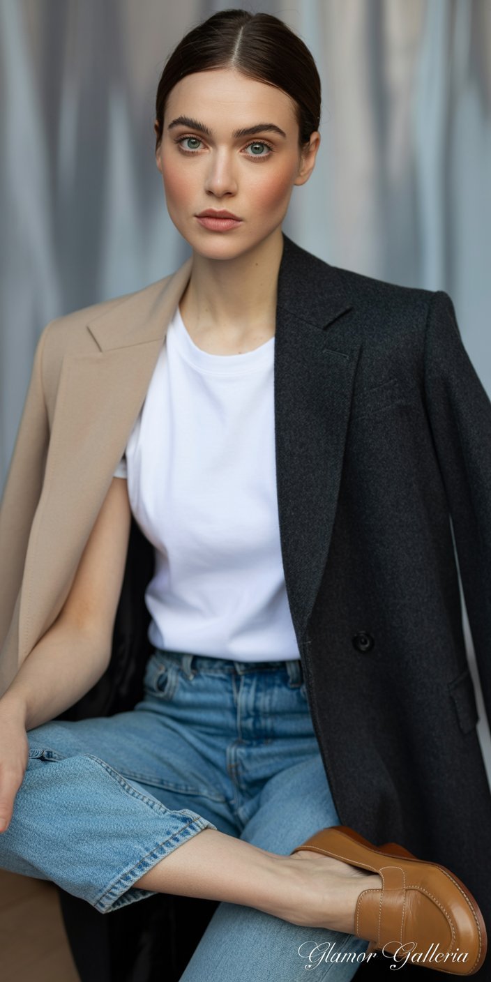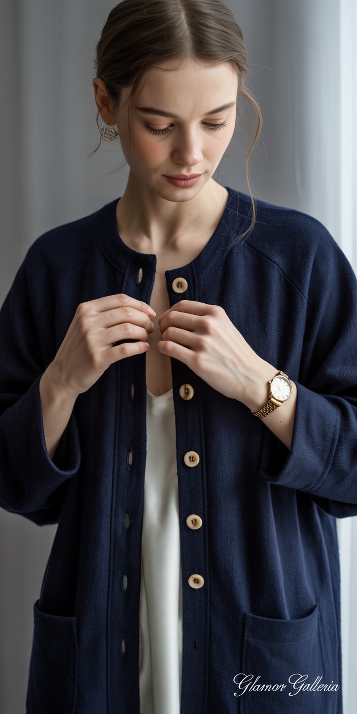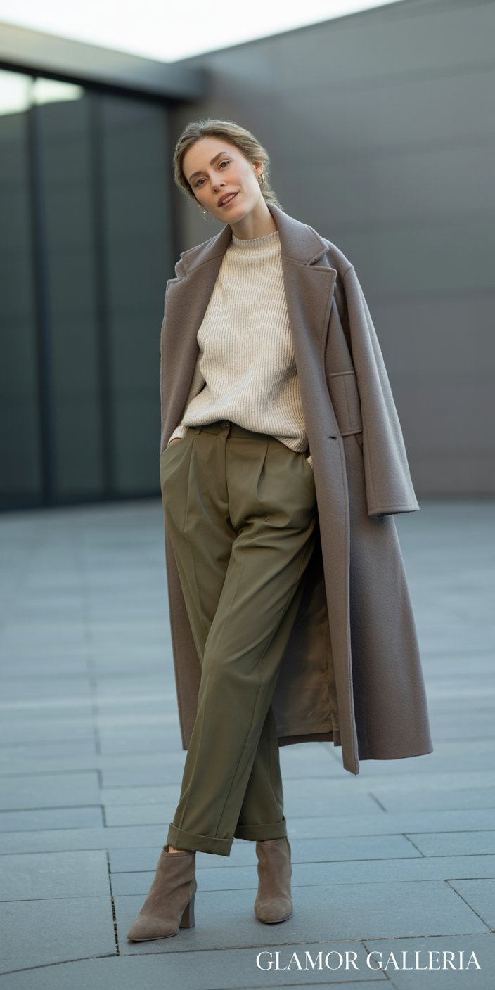 - Add Subtle Contrast: A navy coat over a cream ensemble pops without breaking minimal harmony.