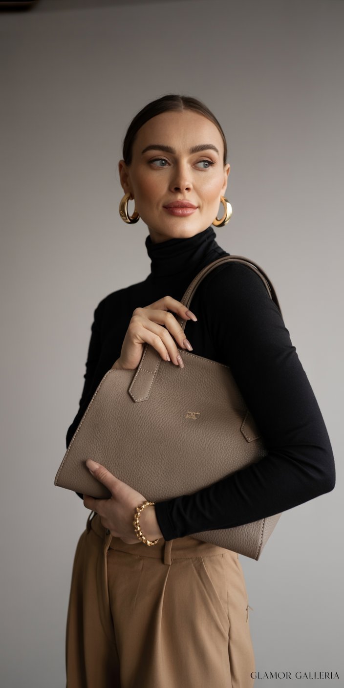 - Structured Leather Tote: Channels polished minimalism while carrying all essentials.