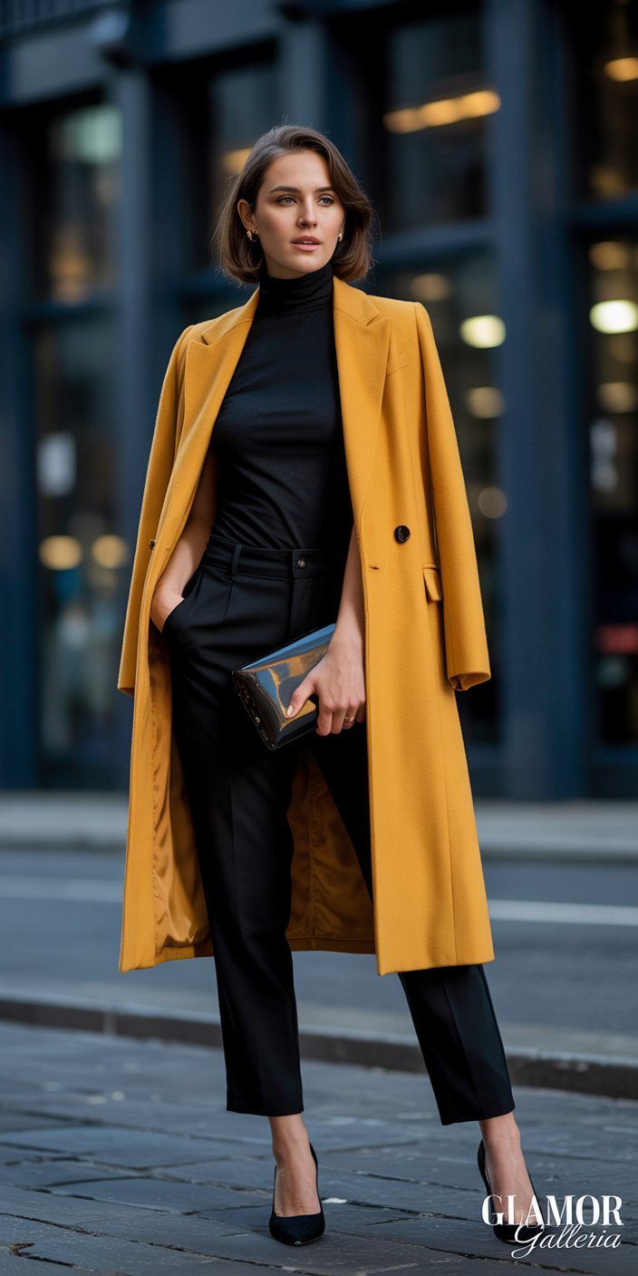 - Coordinate with Your Palette: A mustard-yellow trench works best if mustard appears in another accent piece (e.g., bag lining).