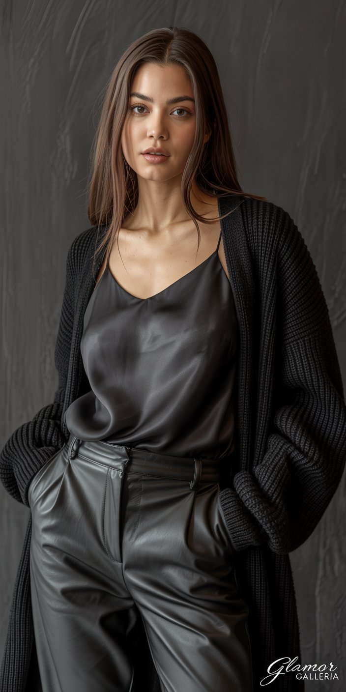 - Silk & Knit: A slinky silk camisole under a chunky ribbed sweater.
