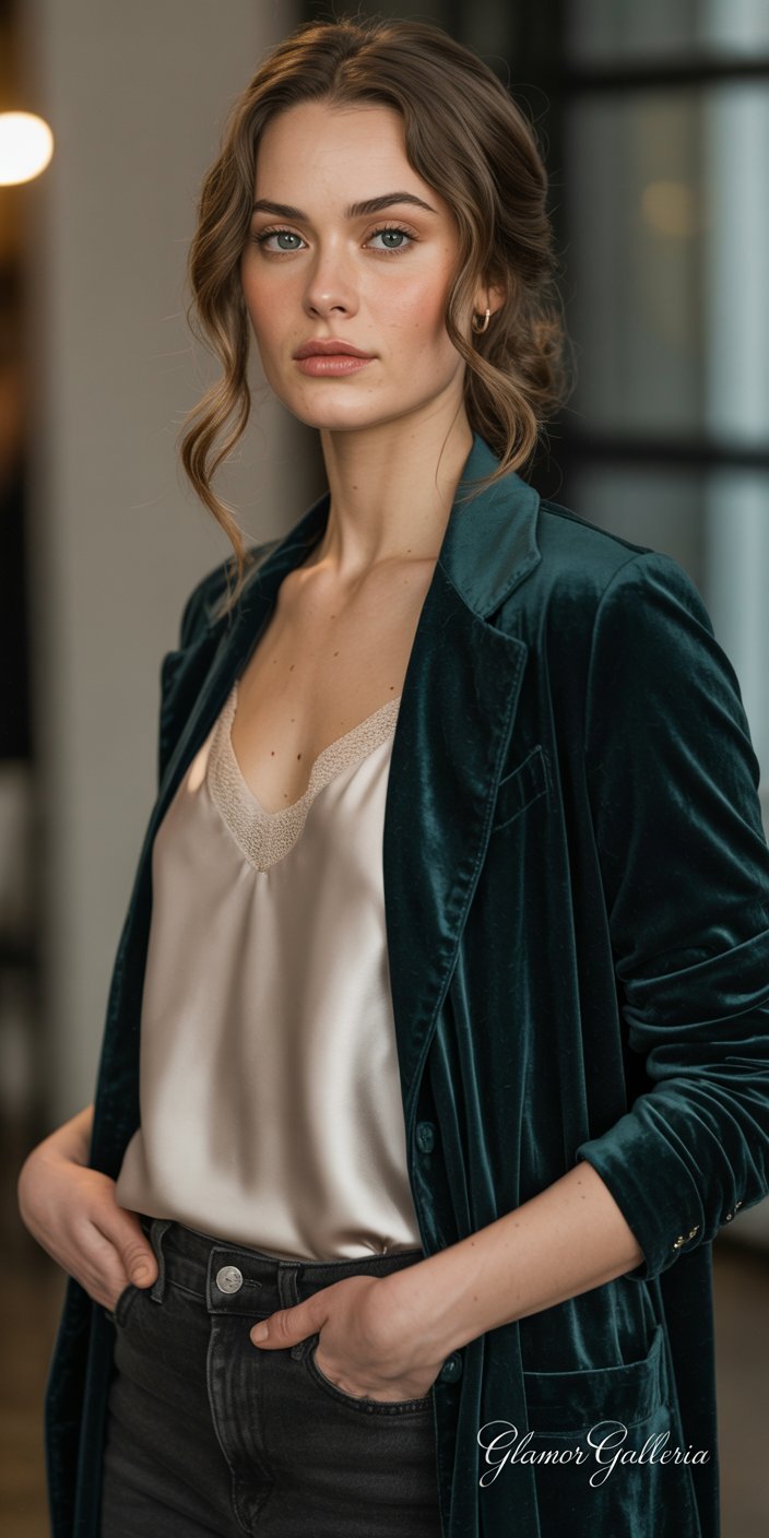 - Outerwear: Drape a plush velvet blazer over one shoulder.