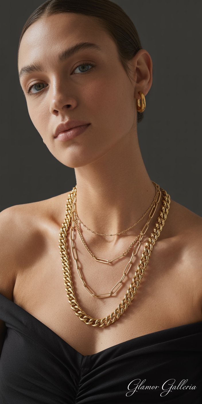 • Depth and Dimension: Multiple chain weights, textures, and lengths create visual interest.
