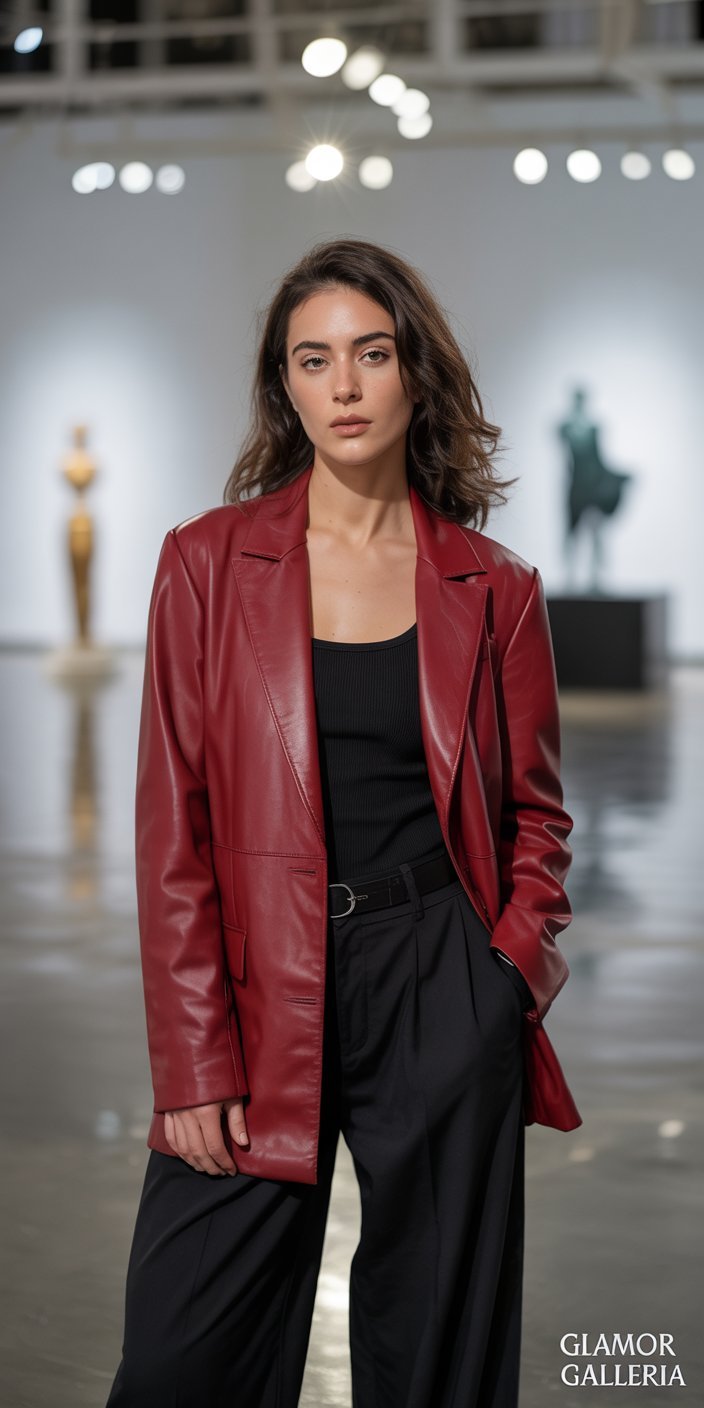 3. Cherry-Red Cropped Leather Blazer