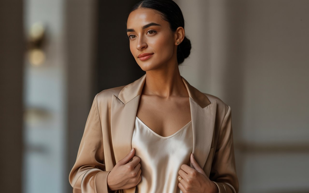 - Smooth + Nubby: Silk camisole under a bouclé blazer.