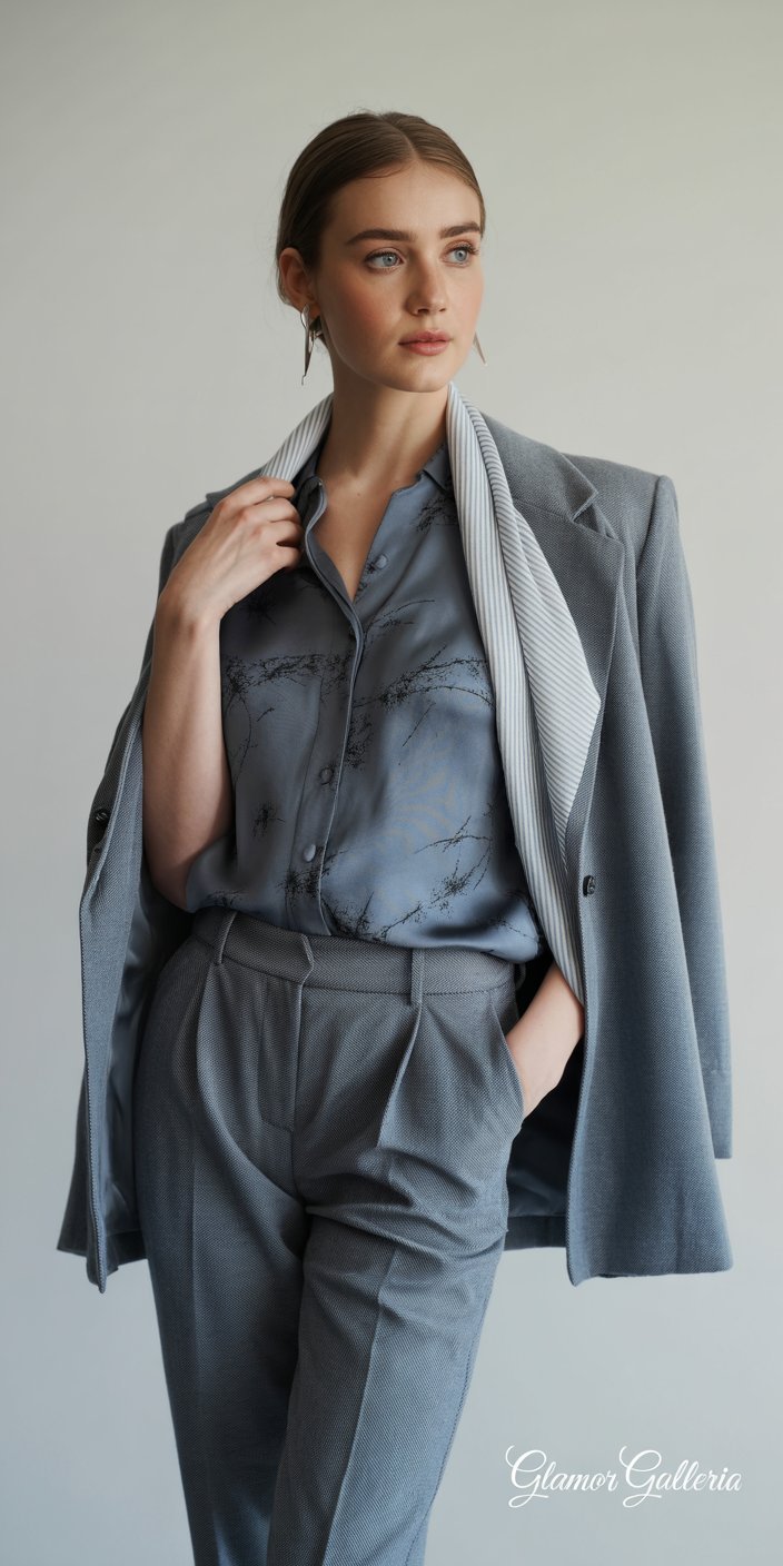 Example: A slate-blue blazer (dominant) + sky-blue blouse (secondary) + navy trousers (accent) creates dimension without clashing.