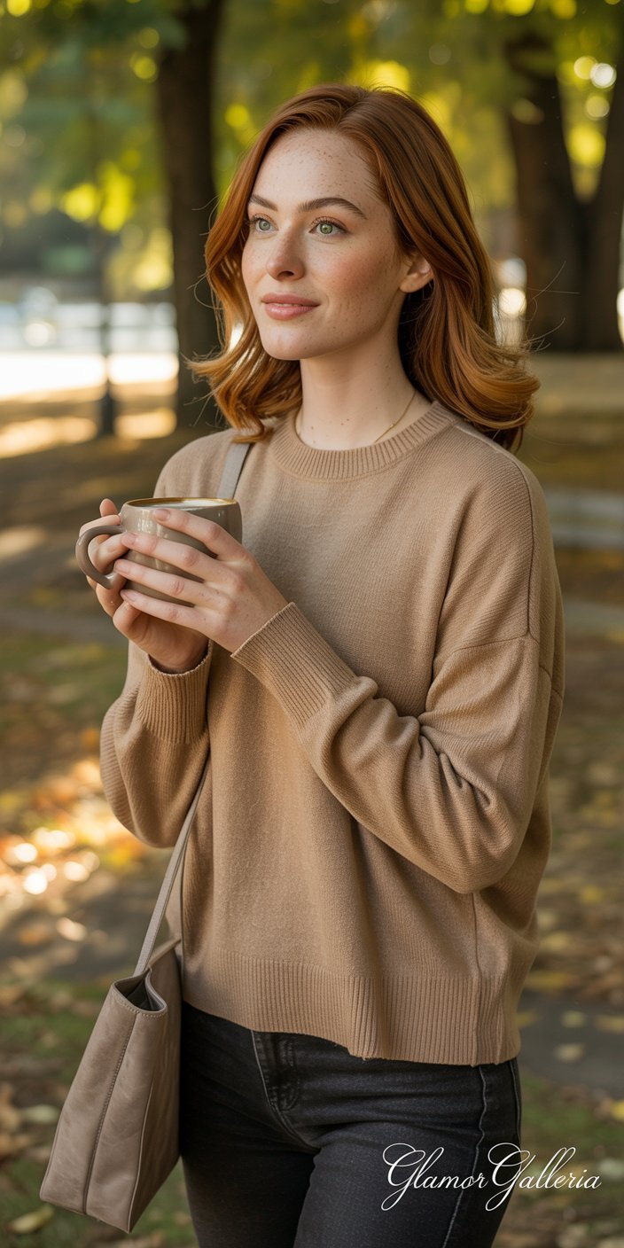 - Weekend Brunch: Knit sweater + jeans + ankle boots → tie scarf at neck + structured tote.