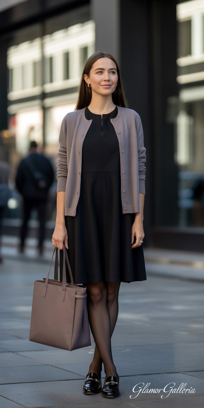 - Day: Layer under a cardigan with opaque tights and loafers.