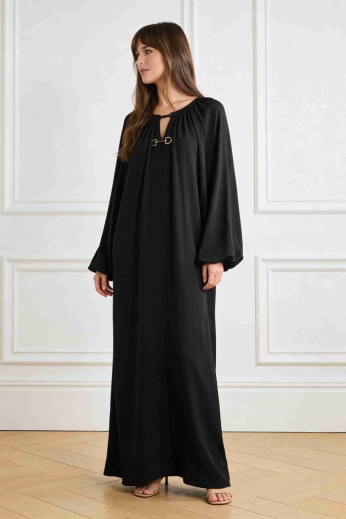 2) Black Structured Gown — “Modern Minimal” Verdict