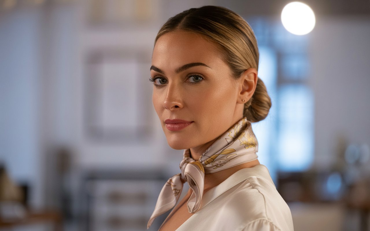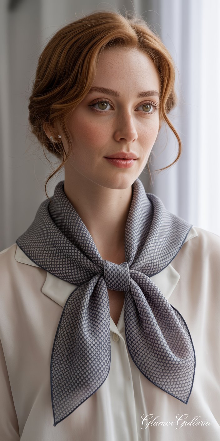 The French knot is the epitome of understated elegance. It keeps the scarf close to the neck, drawing attention to your jawline and elongating your silhouette—perfect for pairing with a crisp white blouse or a simple trench coat.