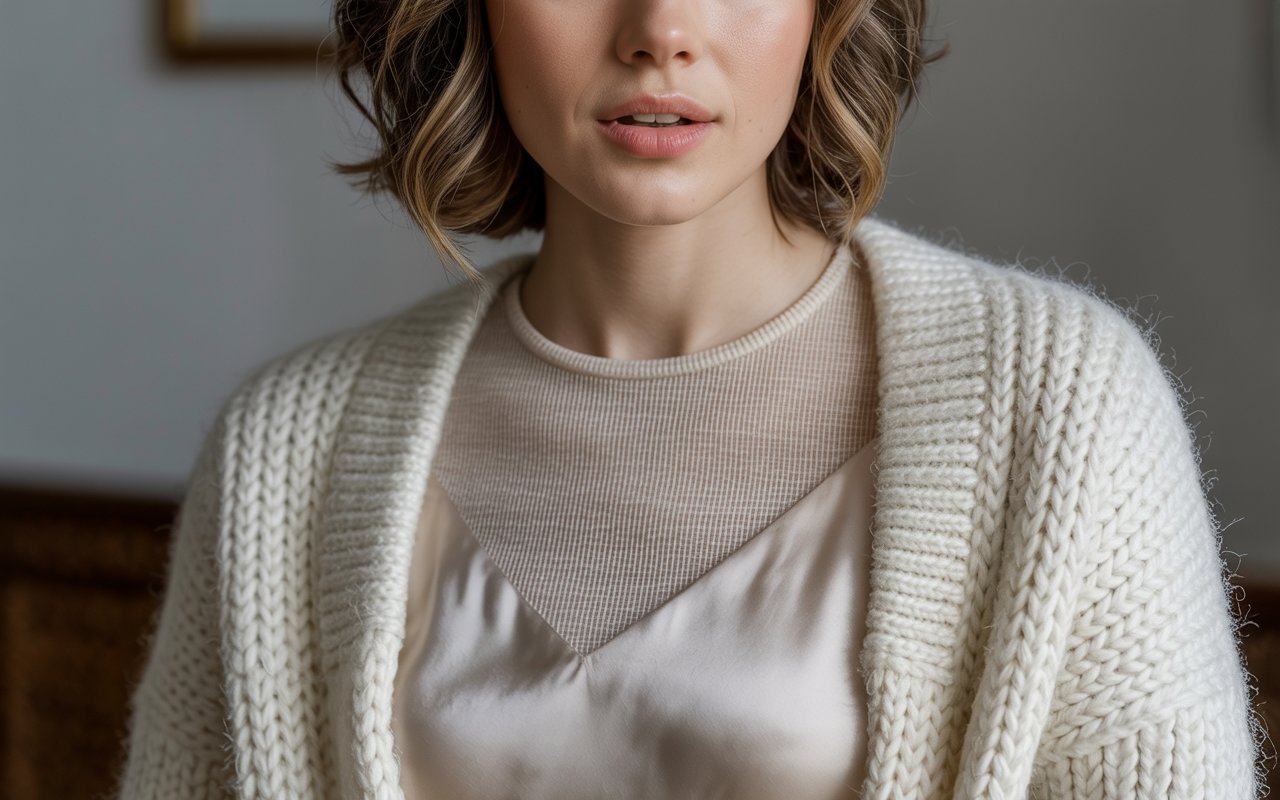 Knits are texture playgrounds. Combine gauge weights and stitches—think fisherman cable over slinky rib tank over stretch-knit midi skirt—to create visual peaks and valleys.